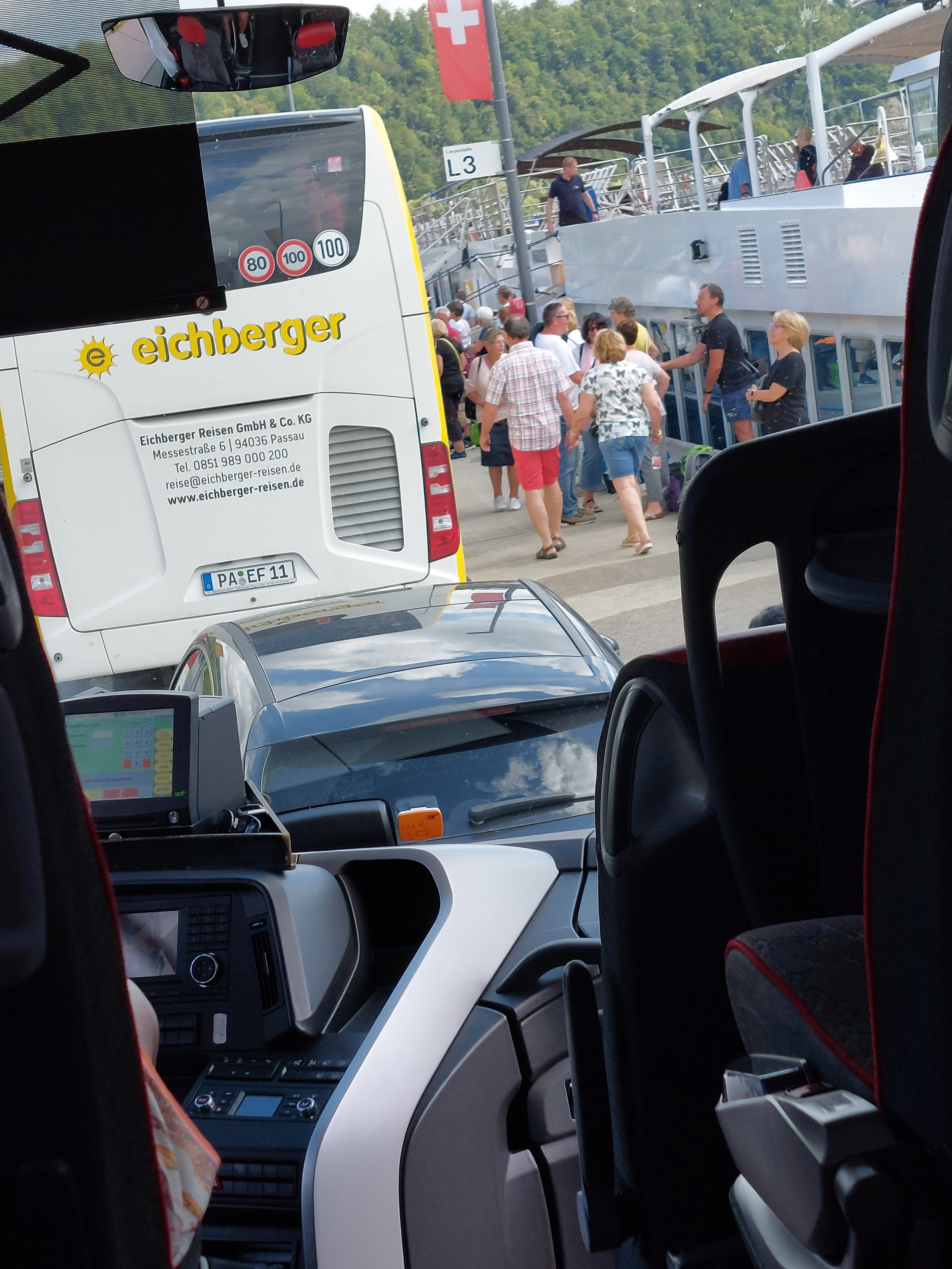 Onderweg met de bus van Lindau naar de auto's in Passau